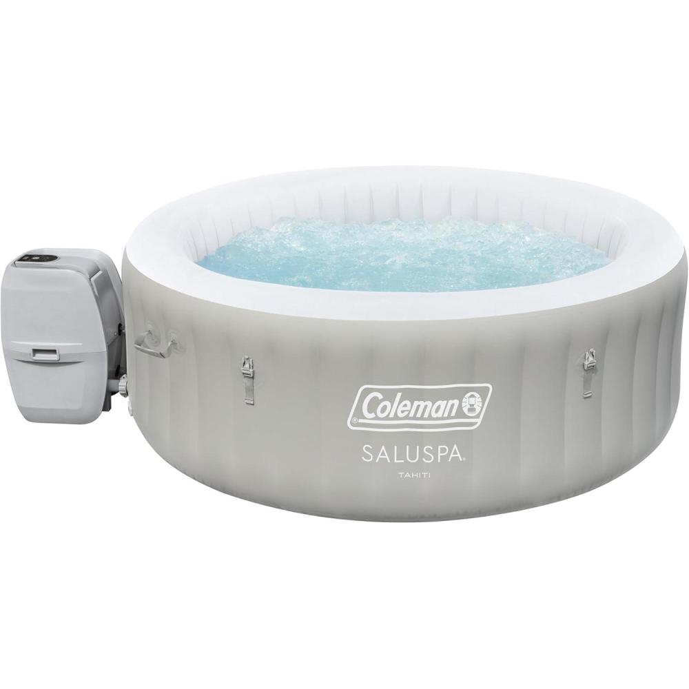 Coleman Airjet Hot Tub: Round Hot Springs hot tub provides a soothing massage experience with 140 bubbling warm jets for up to 6 people; The spa can heat water to 104 degrees Fahrenheit for ultimate relaxation