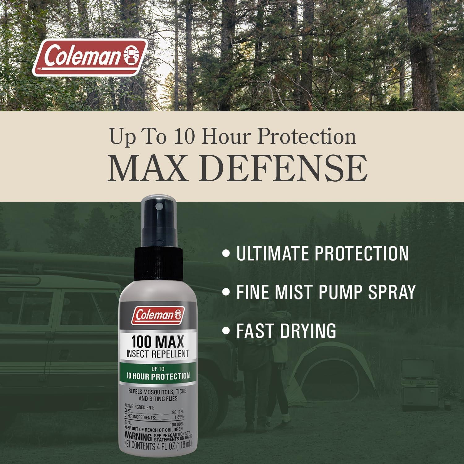Coleman 100 Max 100% DEET Insect Repellent Pump for Ticks and Mosquitos – 4 oz Bottle