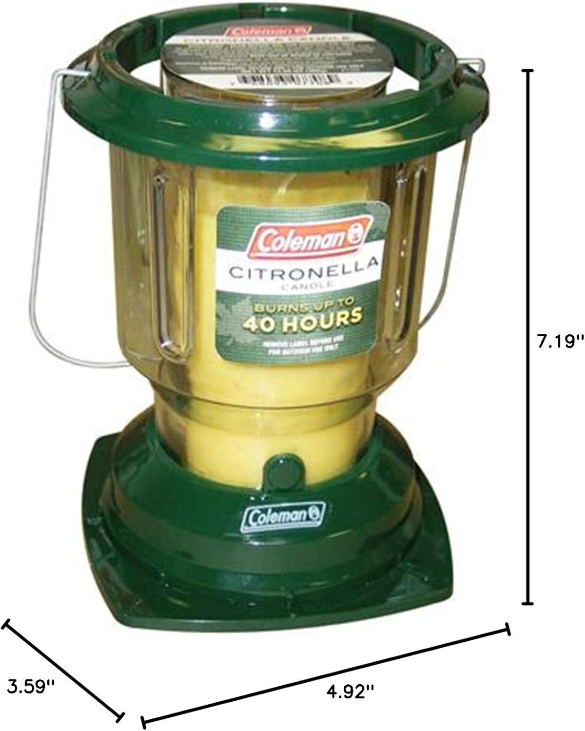 Light this Coleman 70+ Hour Outdoor Citronella Lantern to add ambiance to your outdoor spaces. Citronella oil acts as a naturally occurring mosquito repellent making it perfect for your camping supplies, picnic supplies and patio accessories. This large citronella candle features a classic outdoor lantern design to provide a vintage look and keep nights peaceful. An easy-grasp handle makes this citronella lantern convenient to carry. The metal handle doubles as a hanger for this outdoor citronella candle. Protect your Coleman lantern from rain and debris with the reusable cap. Use this camping candle lantern for 70+ hours of burn time at campsites and picnic areas, or use it as a mosquito repellent outdoor patio lantern.
