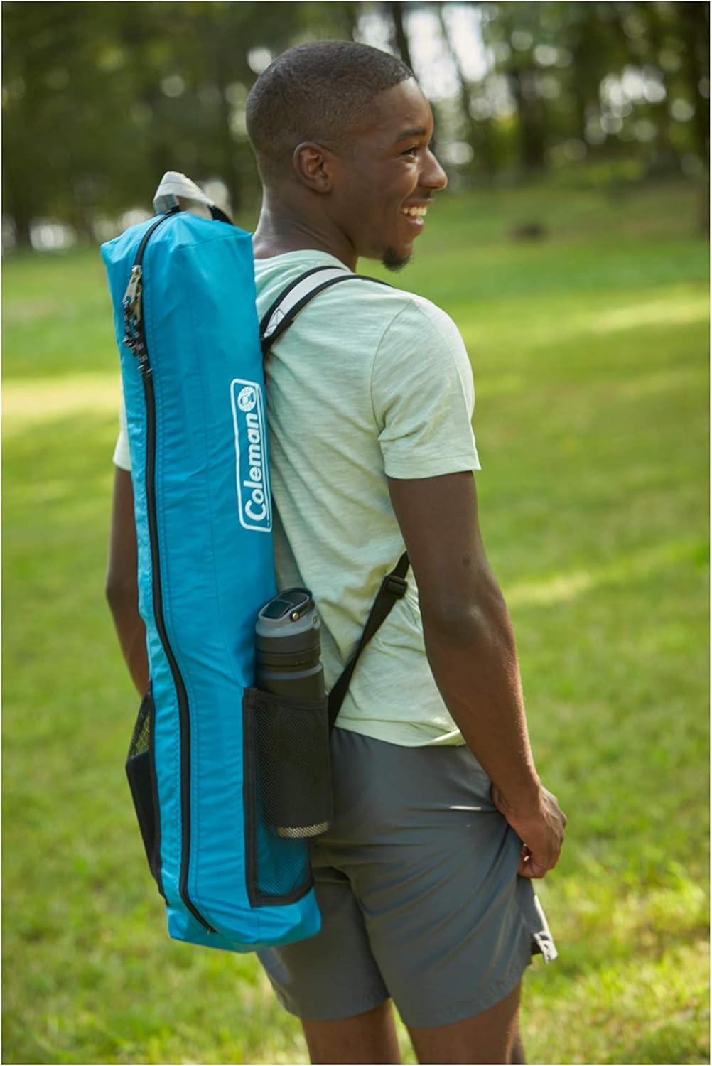 Backpack carry bag (31 x 6 x 6 in.) provides hands-free carrying; adjustable straps for customizable fit and mesh side pockets can store water bottles