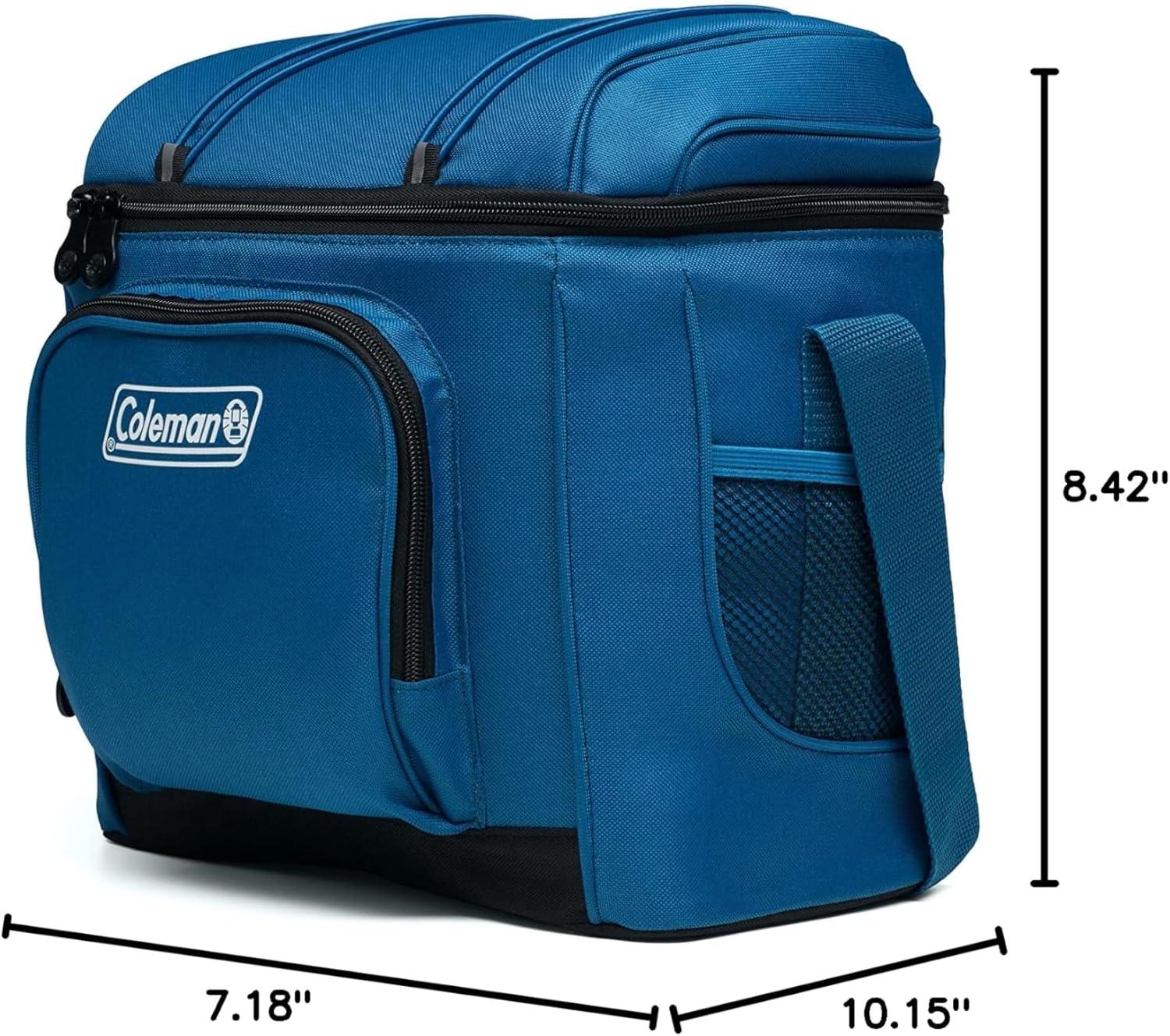 Coleman Chiller Insulated Soft Cooler, Leakproof 9/16/30 Can Cooler with 12+ Hour Ice Retention, Made with Recycled Materials, Great for Lunch, Camping, Beach, Pool, Sports, & More(Blue)