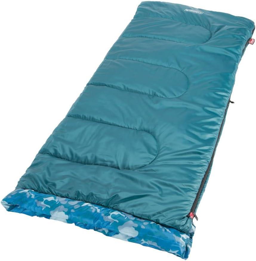 Coleman Kids 45°F Sleeping Bag for Children up to 5ft 5in Tall, Lightweight & Warm Sleep Sack for Indoor/Outdoor Use, Machine Washable(Blue)