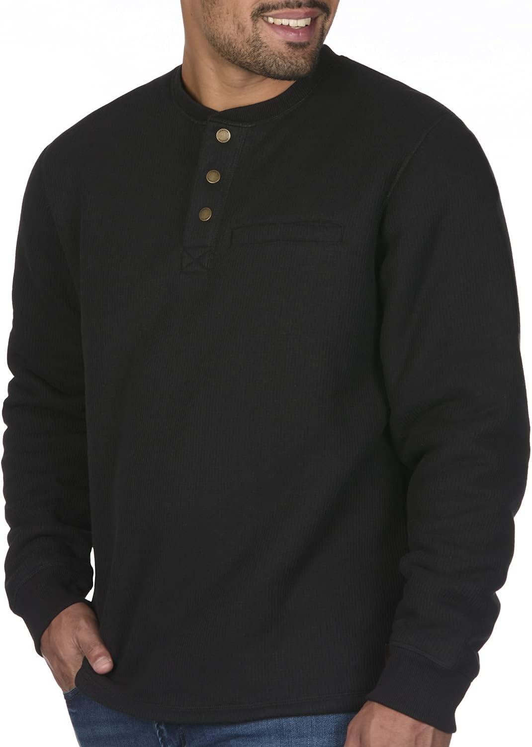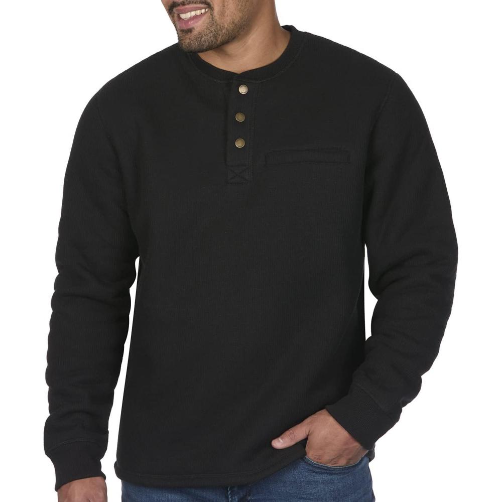Coleman Long-Sleeve Sherpa Lined Waffle Henley Shirts for Men(Black)