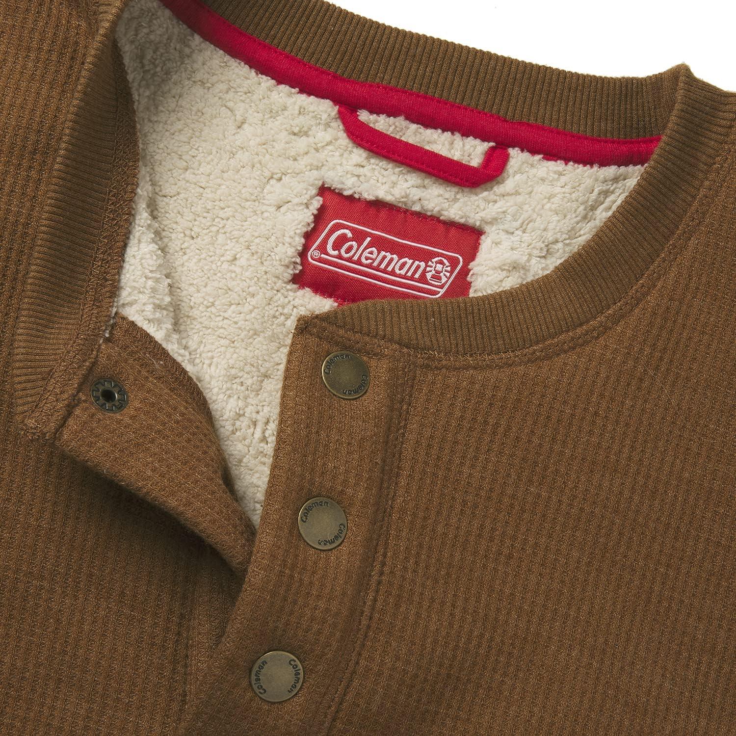 Coleman Long-Sleeve Sherpa Lined Waffle Henley Shirts for Men(Walnut Heather)