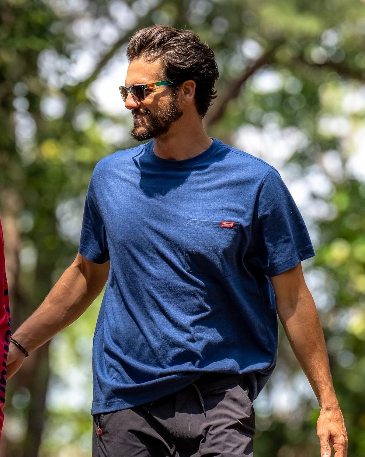 Coleman Mens Workwear Performance Short Sleeve Cotton T-Shirts Multi Color 3-Pack(Cool Grey /Indigo /Copper)