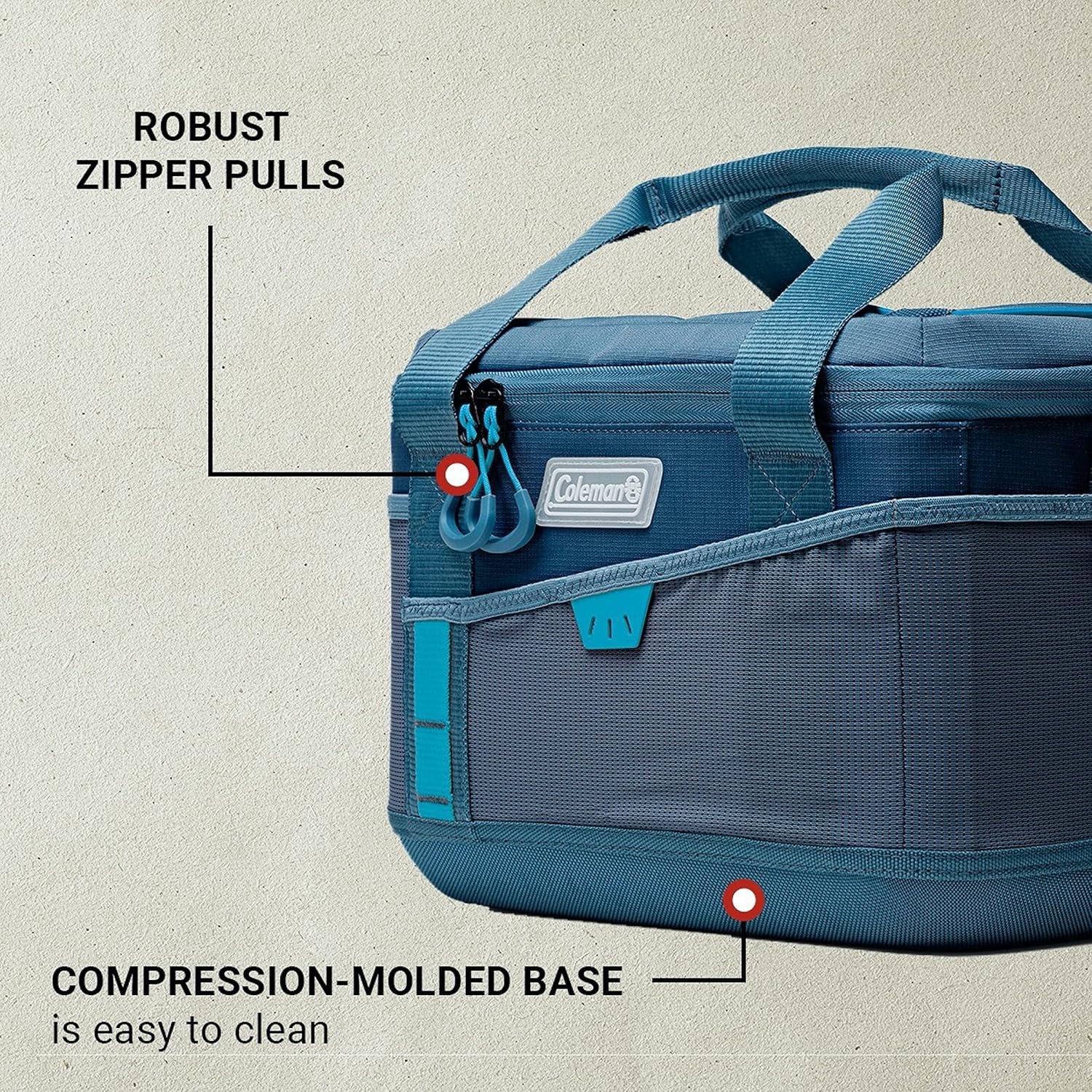 Shuttling to and from all your family's activities, you'll need a cooler that can keep up. The Coleman SPORTFLEX 16-Can Soft Cooler is the perfect soft cooler for spectating on the sidelines, spending a day at the park, or cheering on the team at the state tournament. The 4Way stretch front and side pockets easily fit your phone, keys, or granola bars with room to spare so you can stash more items later in the day. Side mesh pocket also stretches to fit a water bottle. Carry the cooler from your trunk to the park or bleachers comfortably using the padded top handle or adjustable shoulder straps. Food and drinks stay cold for up to 24 hours and are easy to get to thanks to the two-finger zipper pulls.