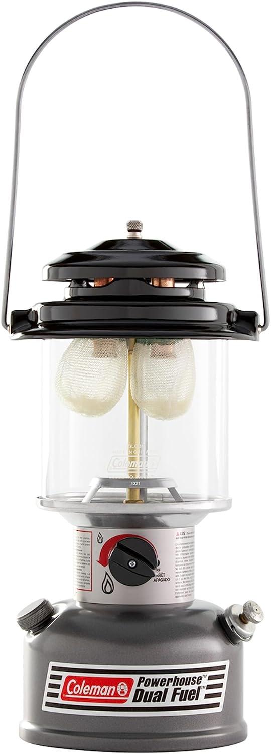 Coleman Powerhouse Dual Fuel Lantern Shines up to 800 Lumens 2-Mantle Lantern Uses Coleman Liquid Fuel or Gasoline with Adjustable Brightness Carry Handle Mantles & Funnel Included(Lantern)
