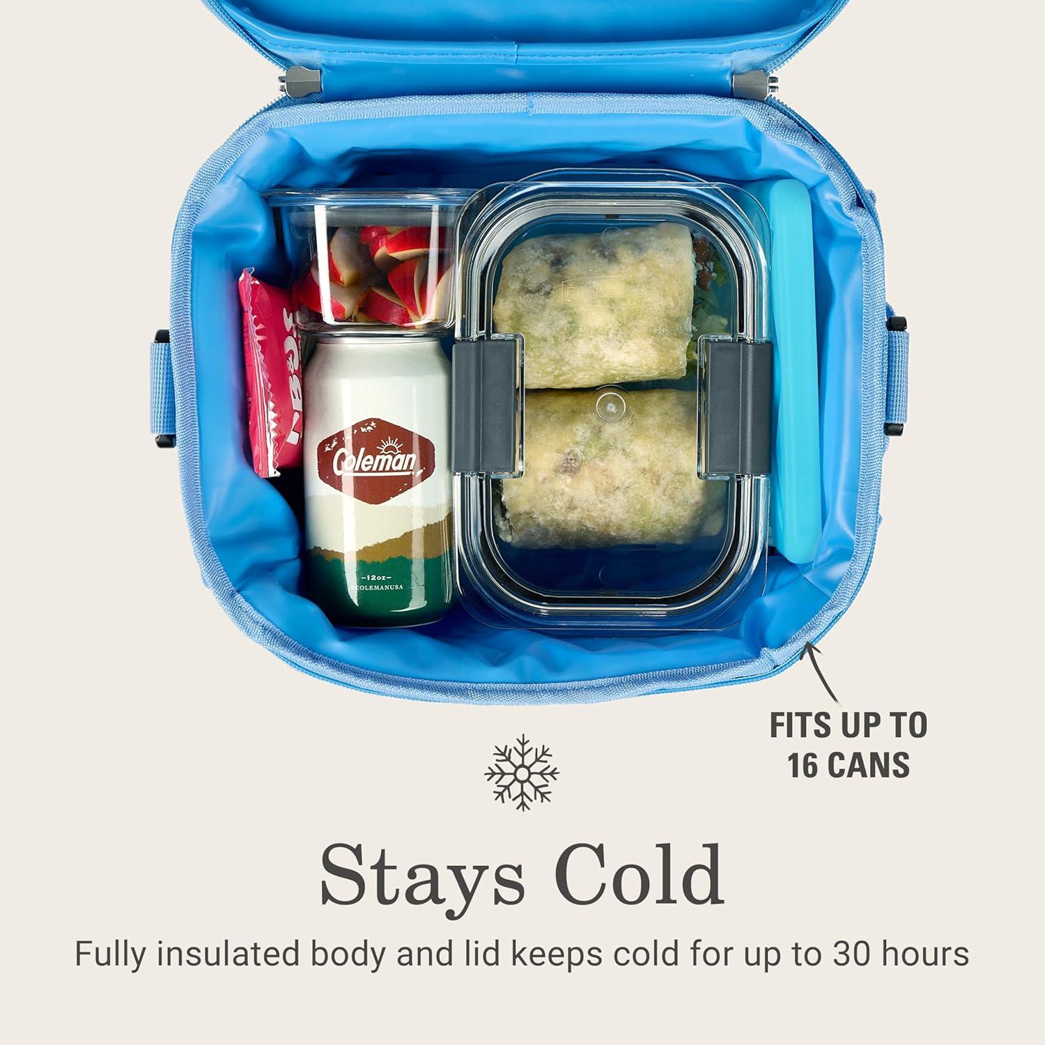 Coleman Pro 16-Can Premium Soft Cooler Lunchbox, Fully Insulated Lid & Body Stays Cold up to 30 Hours, Great for Camping, Tailgating, Parties, Sports, Concerts, Lunches & More(Blue Sky)