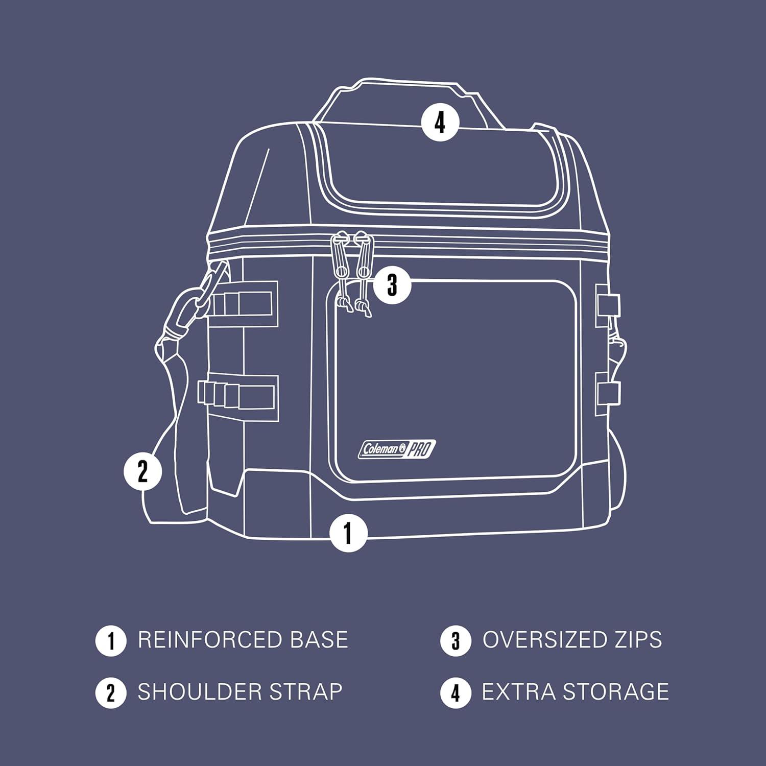 You work hard for your time off. You deserve gear that goes above and beyond. Meet the Coleman Pro series, designed for those who expect more. Combining on-the-go durability with go-anywhere flexibility, this 16-can soft cooler stays cold for up to 30 hours thanks to a fully insulated lid and body. Use its padded carrying strap to comfortably trek from backyard to beach to tailgate to sidelines, while the oversized zipper reduces snags and boosts long-term resilience. Best of all, these built-to-last features are backed by our 3-year limited warranty, so you can confidently bank on Pro performance for all your trips to come.