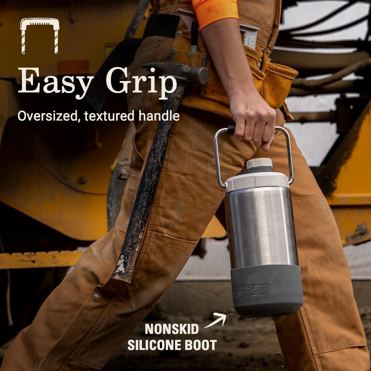 ATTACHED CAP: Tethered, leakproof lid won’t get lost and is easy to use in work gloves