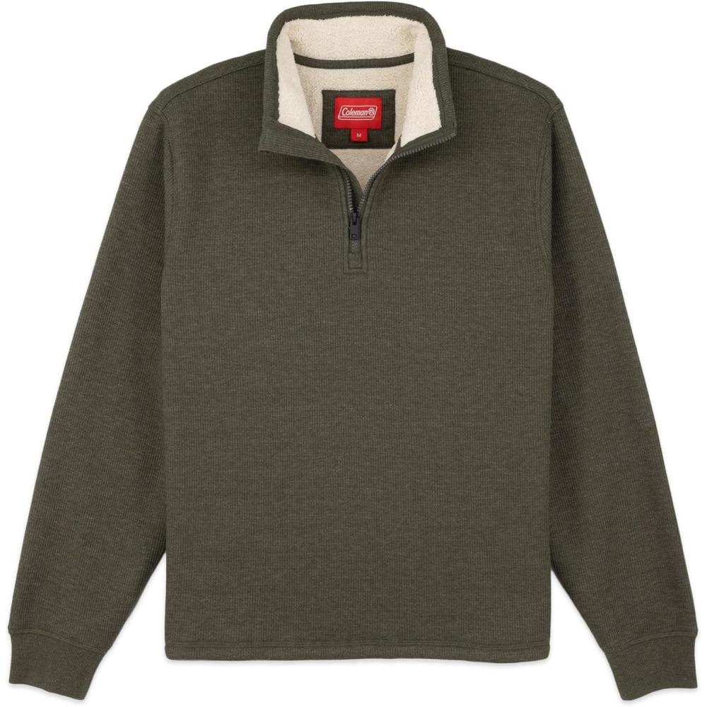 Coleman Quarter Zip Sherpa Henley Long Sleeve Shirt For Men Black Heather Medium(Smokey Olive Heather)