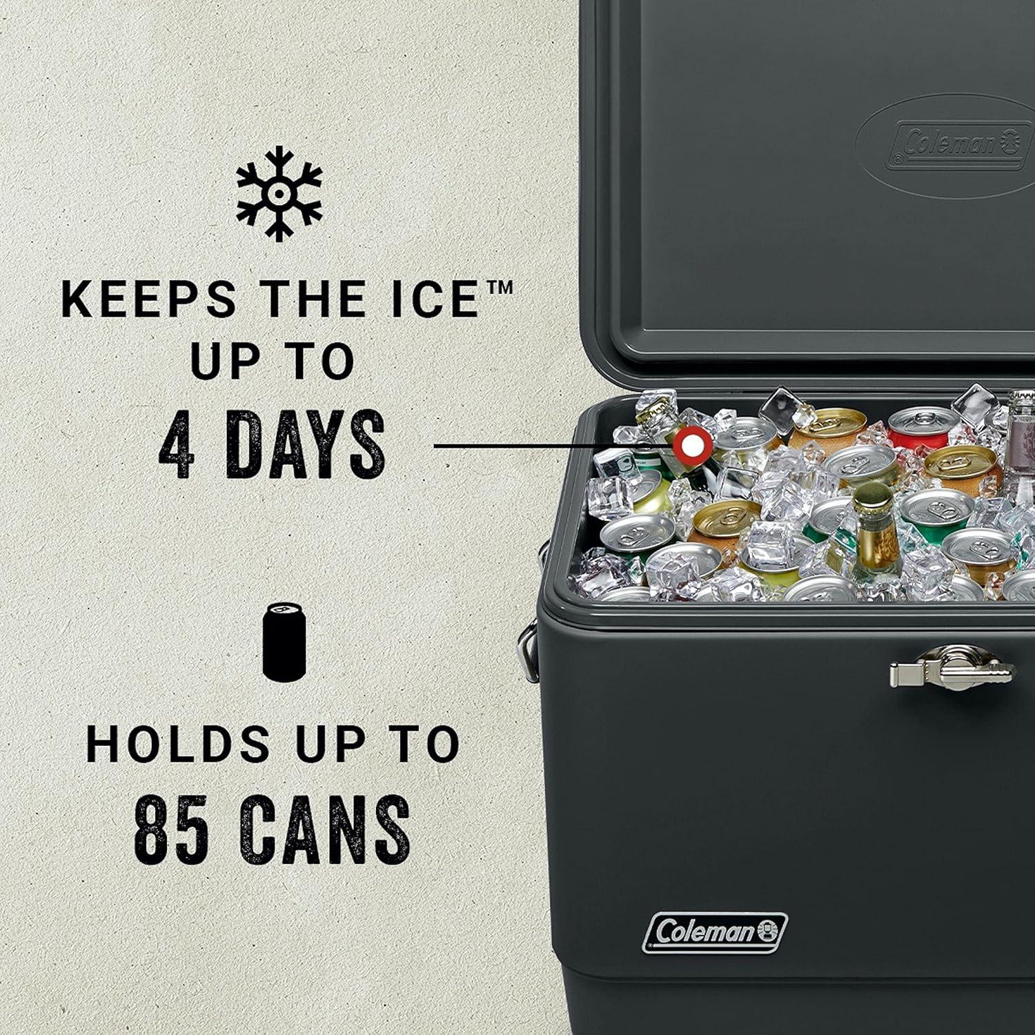 imageColeman Reunion 54qt Premium Steel Belted Cooler Portable Insulated Cooler with Latch Handles Drain ampamp Bottle Opener Great for Camping Tailgating Beach Picnic ampamp MoreMidnight