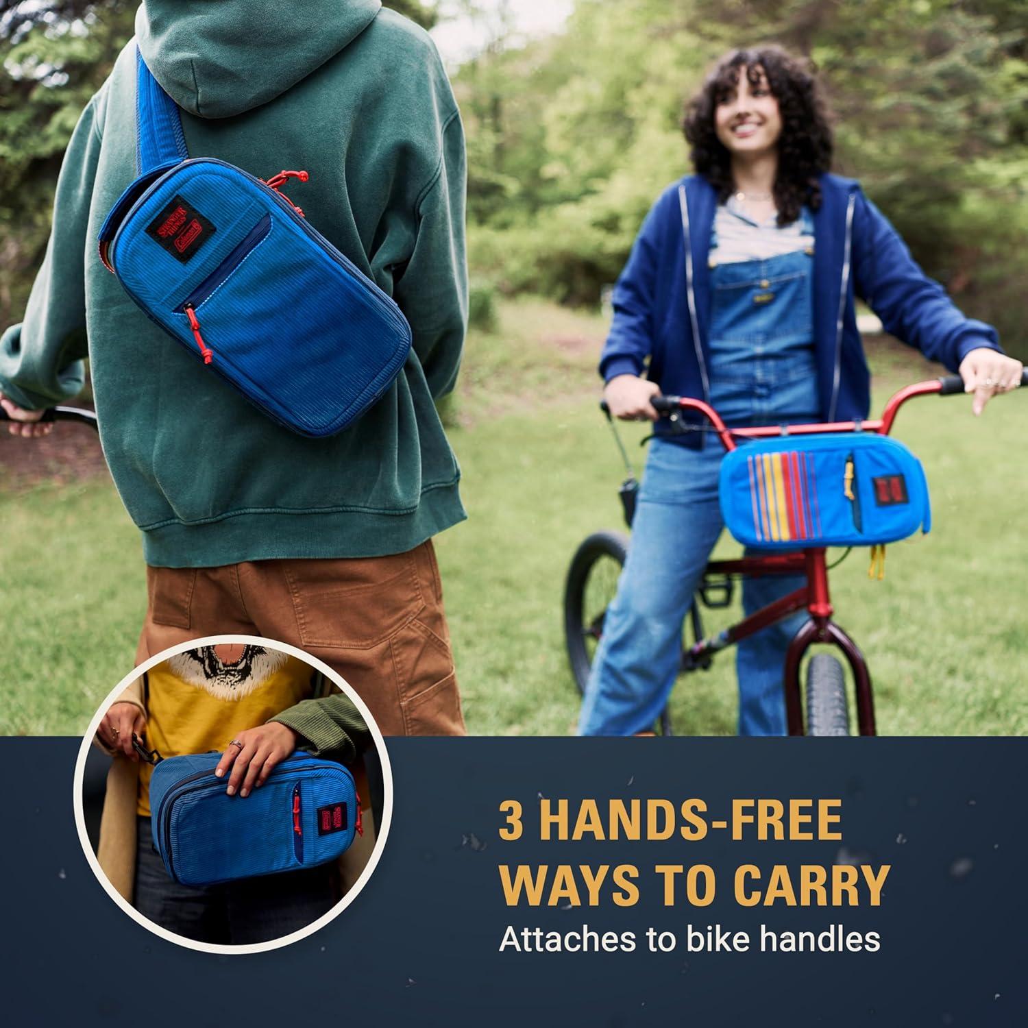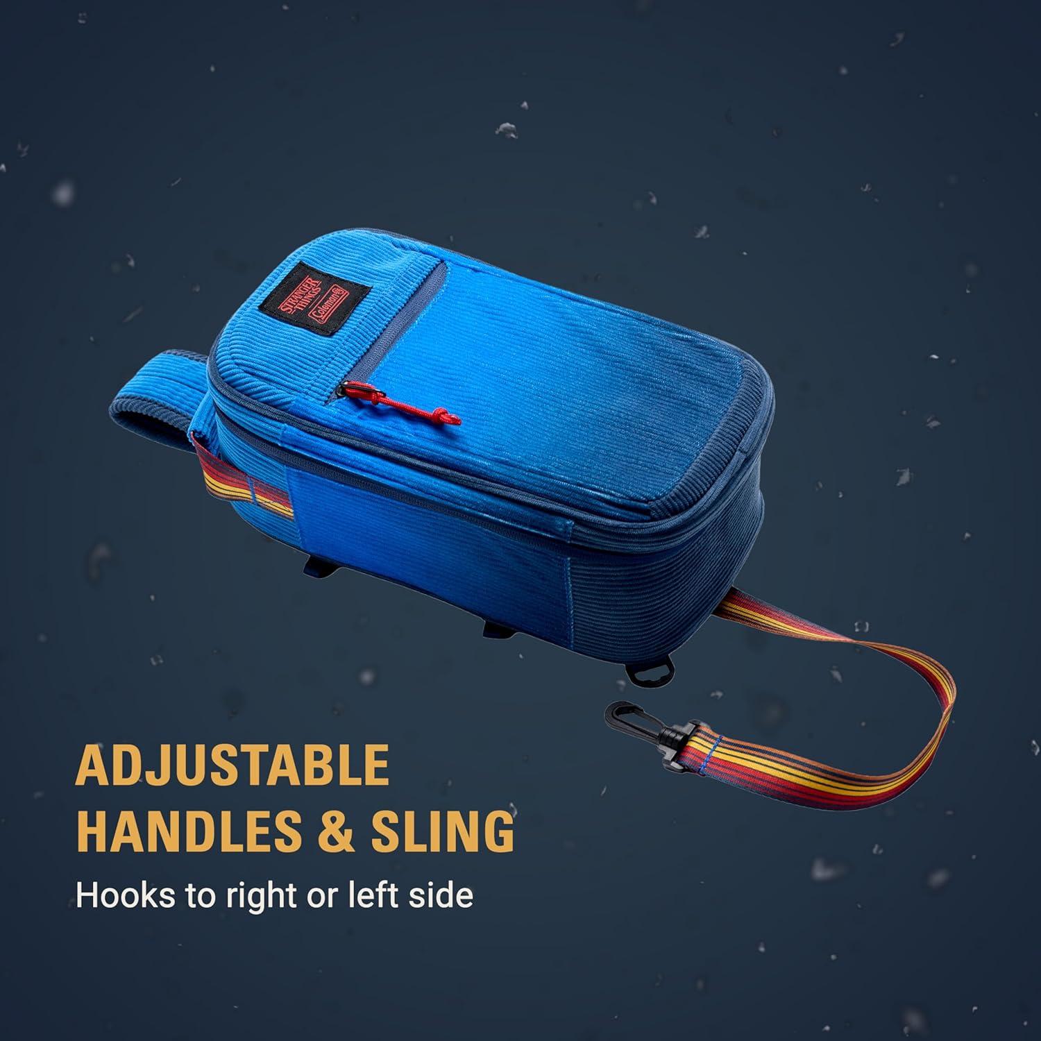 READY TO RUN: Adjustable padded top handles and sling strap for bringing snacks while escaping Demogorgons