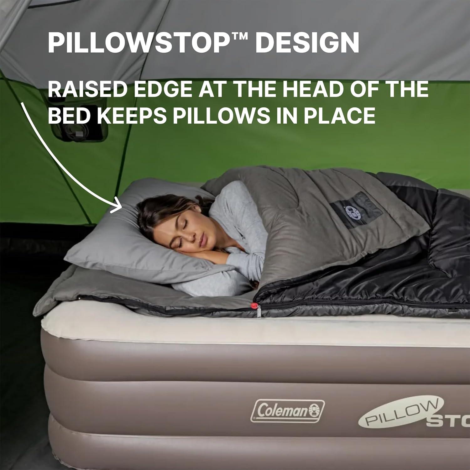 KEEP YOUR PILLOW IN PLACE: The Coleman SupportRest Double-High Twin Air Mattress has the PillowStop design which is a raised edge at the head of the bed to help keep your pillows in place, so they're still under your head and not on the floor.