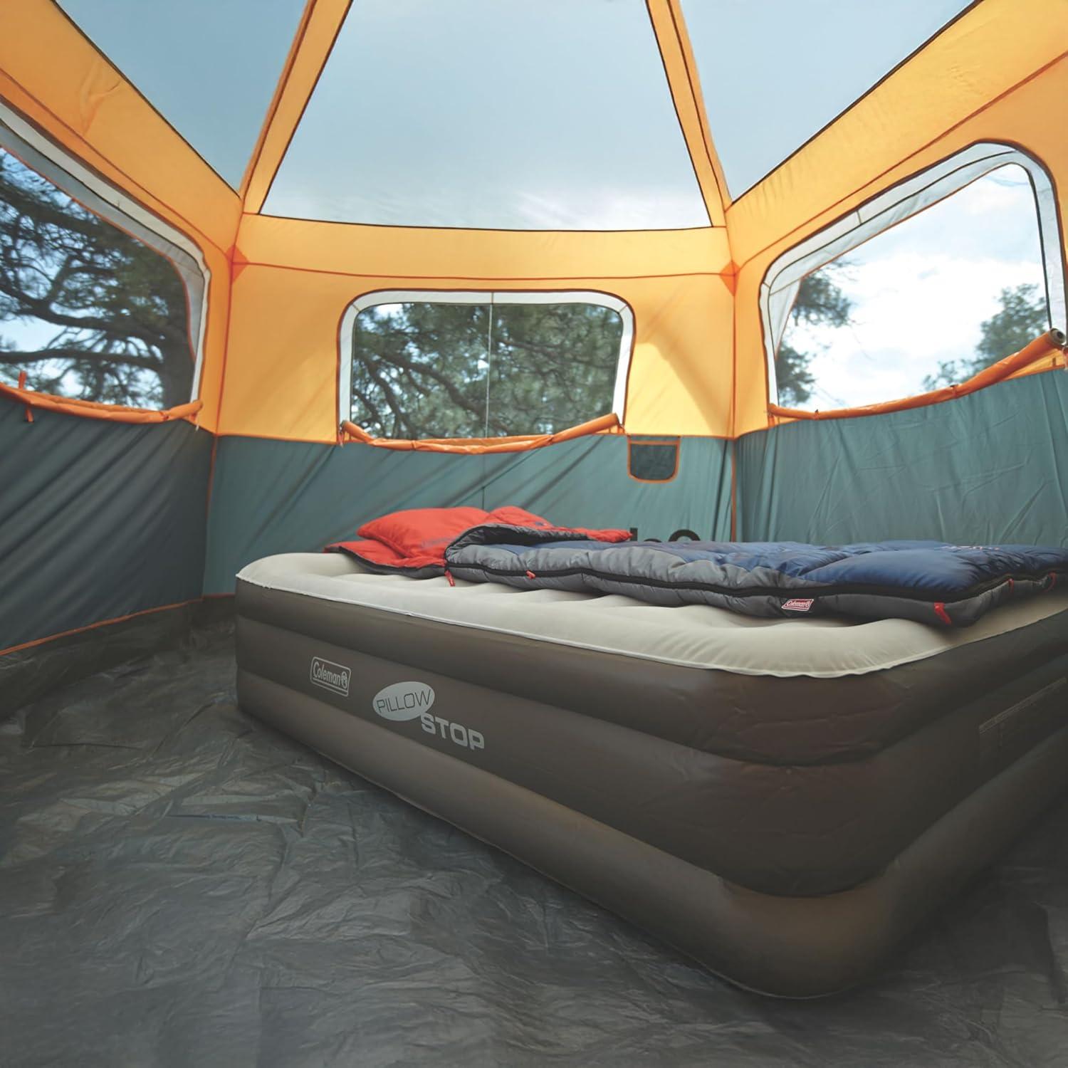 Wake up as comfortable as you went to sleep with a Coleman® SupportRest™ Plus PillowStop™ Double High Airbed. The PillowStop™ design has a raised edge at the head of the bed that helps keep your pillows in place, so they're still under your head when you wake up in the morning. It comes with the convenience of an included 120V pump, so you'll always be ready to inflate your bed. Once you find the perfect firmness, the AirTight® system will help keep it there, since it's factory-tested to be leak-free. With the Support Lock™ reinforced construction providing lasting, stable support, your guests might never want to leave.