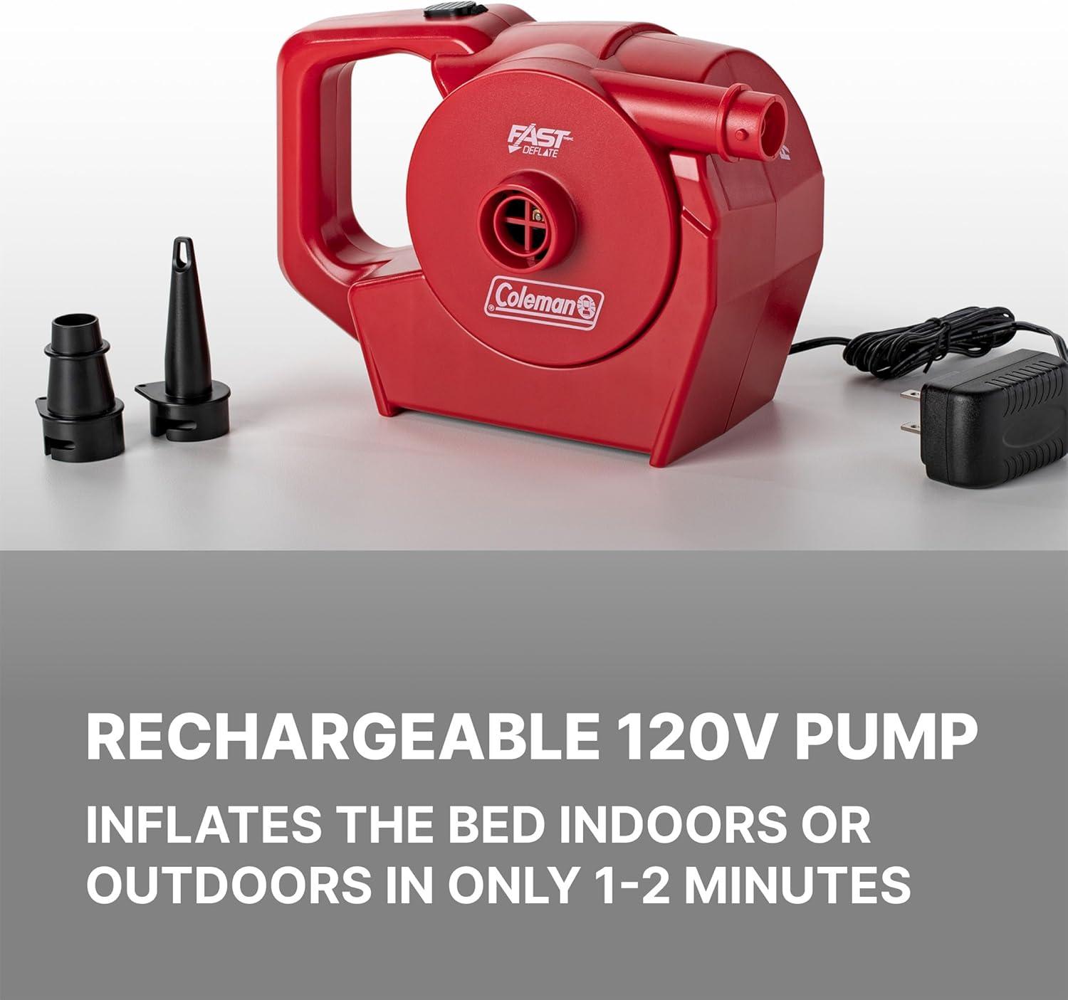 INCLUDED PUMP: You'll always be ready to inflate your air bed with the included handheld rechargeable 120V air pump.